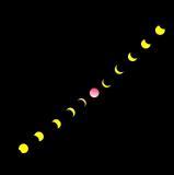 【第22回】 (1)満月・半月・三日月など、月はいろいろな形に見えるのはどうしてでしょう。 (あ)月が何種類もあって、毎日一つずつ姿を現している。 (い)月自身が細くなったり、丸くなったり、毎日ふくらんだりしぼんだりしている。 (う)地球の陰に入って、形が変わるように見えるから。 (え)地球から月を見る角度によって、細く見えたり、丸く見えたりする。 (2)日食って、どうして起こるのでしょう (あ)太陽・月・地球とほぼ一直線に並んだとき、地球から見て、月が太陽の前 に来て、少しずつ太陽を隠す。 (い)太陽が、地球の陰に入って、形が変わるように見える。 (う)地球から太陽を見る角度によって、丸く見えたり、欠けたりして見える。 (え)太陽自身が、形を変えるているので、いろいろな形に見える。 (3)月食って、どうして起こるのでしょう (あ)太陽・地球・月とほぼ一直線に並んだとき、地球から見て、太陽が月の前 に来て、少しずつ月を隠す。 (い)月が、地球の陰に入って、形が変わるように見える。 (う)地球から月を見る角度によって、丸く見えたり、欠けたりして見える。 (え)月自身が、形を変えているので、いろいろな形に見える。 ☆答え☆ 1)え 図1のように、宇宙空間のある場所から見ると、地球も月も半分しか光っていません。 しかし、月は地球の周りを回っていますので、地球からの見え方は、図2のように変 わってきます。 何日たったら、また同じ形の月になるかを観察しましょう。 図1 (2)あ 図2のように、太陽・月・地球とほぼ一直線に並んだときに起こります。 しかし、地球上で、どこでも見えるわけではありません。 また、図3のように皆既日食のとき、太陽の周りに普段は見えていないコロナが見えます。 どうして見えるのか考えてみましょう。 図2 図3 (3)い 図4のように、太陽・地球・月とほぼ一直線に並んだときに起こります。 しかし、日食と同じように、地球上どこでも見えるわけではありません。 また、図5のように皆既月食のとき、赤っぽく(赤銅色に)見えるのはどうしてか、 考えてみましょう。 図4 図5 (西村:枚方市立樟葉西小学校 2010年04月)