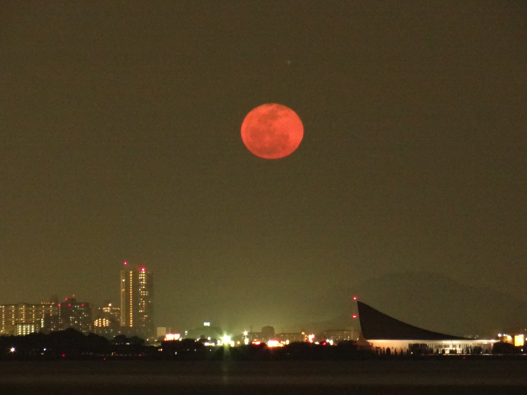 (昇ったばかりの月…月はここまで赤く見えます)