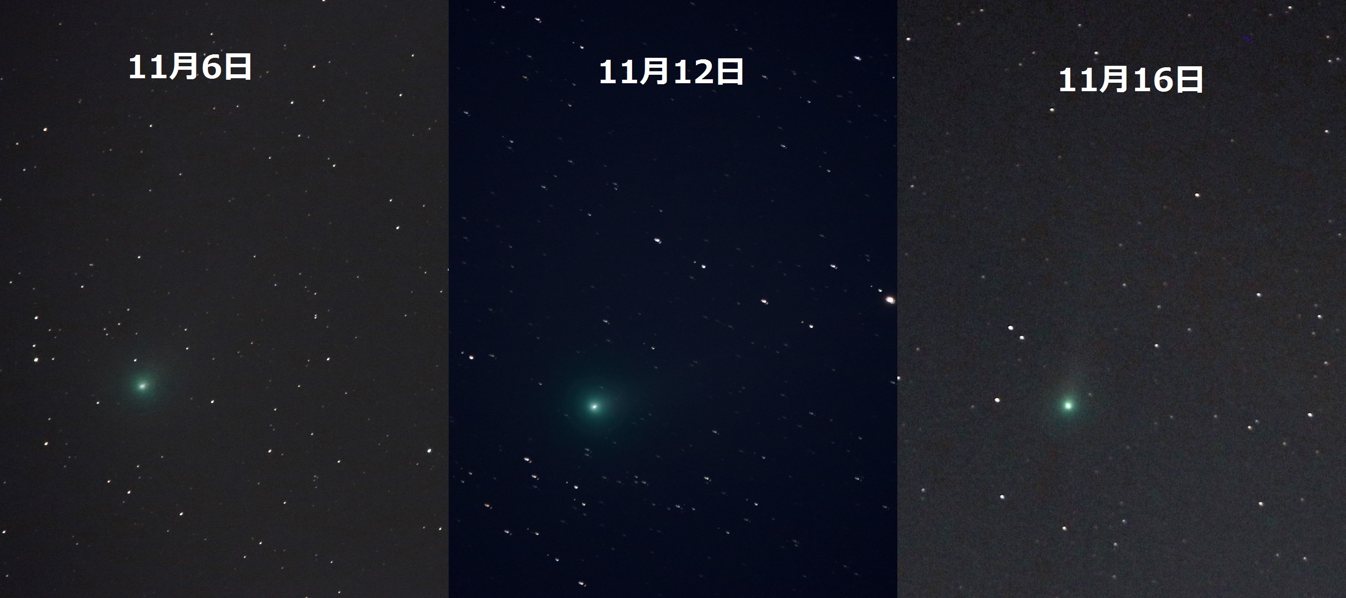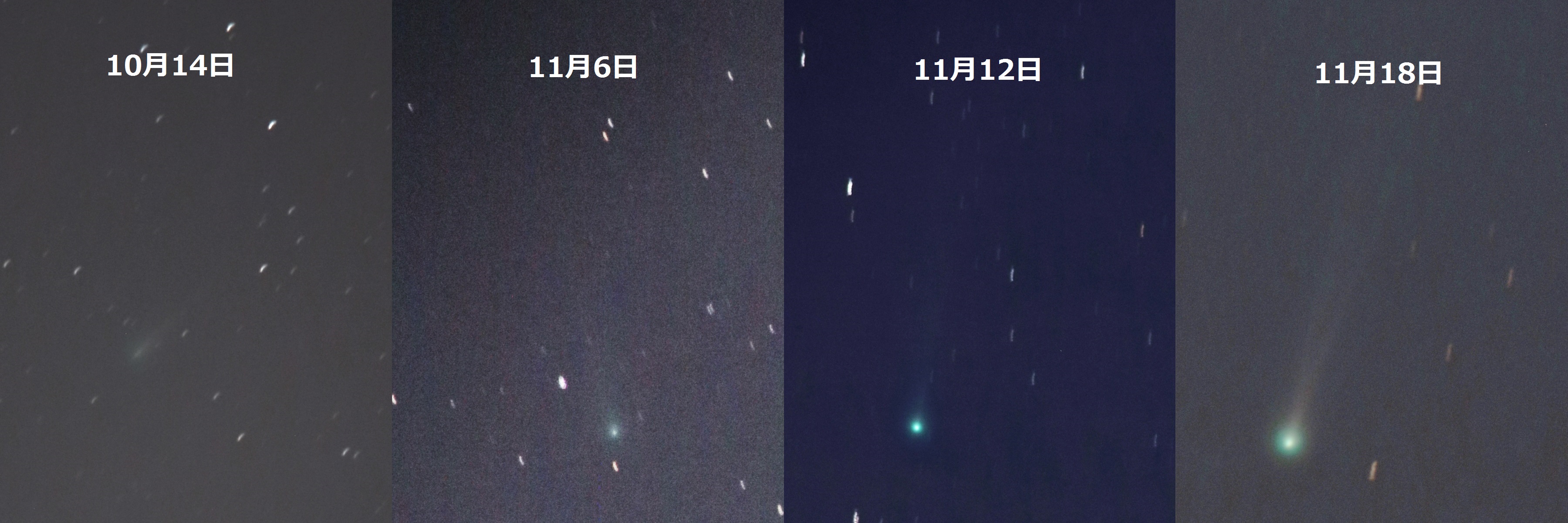【もくじ】☆ミ(今月は彗星特集号!)☆ミ 2013 年 12 月の星空 12月で一番の注目はアイソン彗星です。11月29日に太陽に最接近した後、12月の 始めに明け方の東の空で再び見えるようになります。果たして、明るく見えるよう になるのか、期待したいところです。 14日には三大流星群の一つ、ふたご座流星群が極大を迎えます。毎年安定した活 動を示すのですが、今年は残念ながら月明かりがあります。月から離れた場所を見 て、流れ星を探して下さい。 また、 2日には水星が月に隠される水星食が起こります。ただし、見ることがで きるのは東日本で、それも明け方の非常に低い空で起こります。東の空が開けた場 所で双眼鏡などを使う必要があります。隠されていた水星が月から出現するのは日 の出の時刻に近いので、見るのは難しいです。 *天文現象いろいろ ■ 2日 水星食(東京の場合、午前 5時28分潜入、午前 6時30分出現) ■ 3日 新月 ■ 4日 月の距離が最近( 36 万 0067 km、視直径33.2') ■ 7日 大雪 金星が最大光度(-4.7等) ■ 10日 上弦 ■ 14日 ふたご座流星群が極大(出現期間12月5日〜12月20日) ■ 17日 満月 ■ 20日 月の距離が最遠( 40 万 6268km、視直径29.4') ■ 22日 冬至 こぐま座流星群が極大(出現期間12月18日〜12月24日) ■ 25日 下弦 ■ 29日 明け方の東の空で月と土星が接近 参考サイト 国立天文台 ほしぞら情報 http://www.nao.ac.jp/astro/sky/2013/12.html (鈴木:京都大学) ━━━━━━━━━━━━━━━━━━━━━━━━━━━━━━━━━━━━ 【2】絵本で見る宇宙 Vol.49 夜空に突如現れる彗星。 「彗星の如く」とはよく言ったものです。 前触れもなく現れ尾を引いて日夜動いていくその姿は、 古今東西、凶兆として畏れられてきました。 今では歓迎される大彗星ですが、昔は“悪者”だったのです。 それは、こんなお話の中でも…。 『ふたごの星』 宮沢賢治・作、あきやまただし・絵 「僕らは彗星に欺されたのです。 彗星は王さまへさえ偽をついたのです。 本当に憎いやつではありませんか。」 天の川の西の岸に住んでいる二人のお星さま。チュンセ童子とポウセ童子は彗星 に旅に連れ出されますが、途中で海の底へ落とされてしまいます。海の底は空で悪 いことをした星たちが海星(ヒトデ)に変えられてしまうところ。二人は一体どう なってしまうのでしょうか……? お話の結末はぜひ本編を読んでいただくとして、科学者でもあった宮沢賢治、こ の短い童話の中にも彗星の特質を捉えた文が出てきます。その一つをご紹介しまし ょう。 「それから一番痛快なのは まっすぐに行ってそのまままっすぐに戻る位ひどくカーブを切って廻るときだ。 まるで身体が壊れそうになってミシミシ云うんだ。光の骨までカチカチ云うぜ。」 太陽系の天体たちの多くは太陽の周囲を公転しているわけですが、太陽に近づく ときに最も速く動きます。そして彗星は太陽系の他の天体とは違い、細長い楕円軌 道を描いて公転しています。特にアイソン彗星のように太陽に非常に近づく彗星は、 まさに“まっすぐに行ってそのまままっすぐに戻る位ひどくカーブを切って”動き ます。その時のスピードはかなりのものです。そして、太陽の潮汐力で彗星がバラ バラになってしまう、“身体が壊れ”てしまうこともあるのです。 賢治は1910年のハレー彗星を見ています。1910年は、地球が彗星の尾の中に入っ て、地球の空気がなくなる、尾の中の毒で生き物が死ぬ、といった情報が出回り一 部ではパニックになりました。賢治の中では、そのようなできごとから彗星の悪者 ぶりを目の当たりにして、このお話のひとつの動機になったのかもしれません。僕 個人の勝手な推察ですが…。 もちろん私たちは悪者として彗星を畏れるのではなく、世紀の天文現象として期 待して待っています。バラバラになるかどうかも含めて、静かにアイソン彗星を見 守りましょう。 (塚田:平塚市博物館) ━━━━━━━━━━━━━━━━━━━━━━━━━━━━━━━━━━━━ 【3】音楽で聴く宇宙 ホセ・カレヨ作曲 「Ikeya-Seki」 今回は彗星特集ということで、クラシック音楽ではありませんが、ホセ・カレヨ というジャズ音楽の作曲家が作った「Ikeya-Seki」という曲のエピソードをご紹介 します。 1965年に 9月にアマチュア天文家の池谷薫氏と関勉氏が一つの彗星を発見しまし た。これが池谷・関彗星です。この彗星は「1965年の大彗星」と呼ばれるほど明る く輝き、昼間の太陽の近くでもはっきりと見えたそうです。 ホセ・カレヨはキューバのハバナで、池谷・関彗星のニュースを聞き、この「Ikeya-Seki」 を即興で書きました。肉眼でもきれいに観察できる期間が数日はあったそうなので、 彼は実際に自分の目で彗星を見ていたのかもしれません。作曲を終えたカレヨはそ の楽譜を池谷・関両氏に贈ったのだそうです。当時、キューバから日本への楽譜の 旅は、とても長く果てしない道のりだったでしょう。 その後、関氏はお礼の意味を込めて、1992年10月に自身