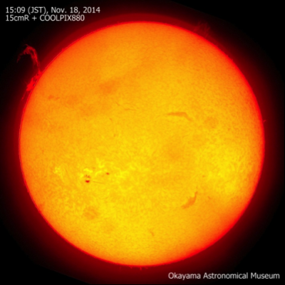 【第17回 岡山天文博物館】 皆さんこんにちは。岡山天文博物館の専門員、今村和義です。 今回は「晴れの国岡山」の浅口市にある岡山天文博物館と岡山天体物理観測所 (国立天文台) などについてご紹介致します。 岡山天文博物館は1960年に開所した岡山天体物理観測所 (旧・東京大学東京天文台)と同時期に併設してつくられた50年以上の歴史を持つ老舗ともいうべき博物館です。 両施設は浅口市鴨方町と矢掛町にまたがる竹林寺山の一角 (標高約350m) にあり、山頂からは瀬戸内海を一望することができます (透明度の良い日は瀬戸大橋も見えます)。 瀬戸内海に面する岡山の南部は全国的にも晴天率が高く、さらに気流が安定しているなど、天体観測を行う上で大変有利な場所となっています。 さて、当博物館の人気 No.1 コンテンツはなんといってもプラネタリウムです。 光学式の投映機と直径10mのドームは1990年に導入され、20年以上経った今も昔ながらの「季節の星空紹介」をご覧頂けます。 2011年にはデジタル投映機も導入され、迫力ある全天周の映像も楽しむことができます。 ちなみに、プラネタリウムとは別に当館では立体メガネを使った四次元デジタル宇宙シアター (4D2U) の生解説を行っています。 解説は館長と専門員2名 (計3名) が交替で行っています。 解説員によって内容が異なり、また客層に合わせて説明する内容も変わるのでライブ感のあるシアターをお楽しみ頂けます。 館内には太陽望遠鏡も設置されています。 お天気の良い日は太陽の生々しい活動をご覧いただけるので、初めて見た方は思わず「おお!」と声をあげるほどです。 口径15cmの屈折望遠鏡ではHαフィルターを通して主にプロミネンスの観察が可能で、時々フレアによる発光現象も見ることができます。 口径8cmのほうでは金属フィルターを通して太陽の黒点を詳細に観察できます。 1階と2階にある展示室には、観測所に設置されている国内最大級の口径188cm望遠鏡の模型や同望遠鏡で使われていた本物の巨大な分光器が展示されています。 その他にも太陽系、恒星、銀河系などに関する一般的な天文学の展示物もあります。 私の最近のオススメは天文学者も使っているパロマー写真星図のレプリカをルーペで観察して頂ける展示です。 博物館では星空観望会 (浅口市内)、子ども向けの望遠鏡工作、プラネタリウムコンサートなど、年間数多くのイベントを実施しています。 観望会では岡山天文博物館友の会の方々のご協力もあり、会場には友の会メンバーの望遠鏡がズラリと並び圧巻です。 ところで博物館のお隣にある岡山天体物理観測所には一般の方向けに見学コースがあります。 博物館のすぐ横にあるスロープを歩いて登っていくと、巨大なドームの中にある188cm望遠鏡をガラス越しに見ることが可能です。 50年以上稼働している望遠鏡になり、現在も研究の最前線で天文学者たちが利用しています。 なお一般向けの特別観望会が1年に2回 (春と秋) 実施され、自分の目でこの望遠鏡を覗くことができるチャンスがあります。 さらに夏には特別公開も実施され、観測所内の普段は見られないような場所も公開されます (博物館では素敵な天文グッズが当たるビンゴ大会や工作コーナーなども催されます)。 なお2015年から博物館の向かい側では京都大学の口径3.8m望遠鏡の建設がはじまっています。 この望遠鏡の主鏡は188cm望遠鏡のように1枚の鏡ではなく、合計18枚からなる分割鏡となっています (口径比はF6です)。 そして望遠鏡の先端に装着される副鏡のサイズも大きく、こちらは口径1.1mあります。 博物館では3.8m望遠鏡に関する展示を新しく設置し、最新の情報をお届けしています。 将来的には3.8m望遠鏡の見学ツアーも行われる予定です。 皆様のご来館、心よりお待ちしております。 参考文献 ・岡山天文博物館のHP http://ww1.city.asakuchi.okayama.jp/museum/ (今村:岡山天文博物館 2015年06月)